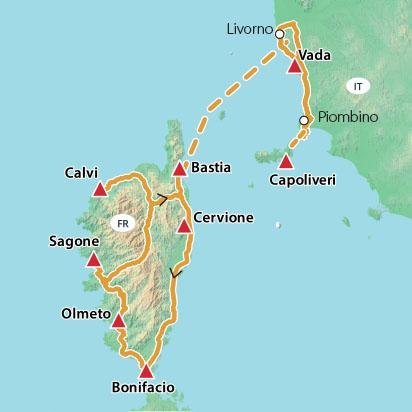 Dag 20We reizen door naar Bastia (ca. 10 km). Daar gaan we aan boord van de ferry voor de overtocht naar Livorno.