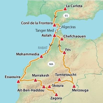 [omschrijving_content] => Reisdag naar Tanger Med (ca. 85 km), waar wij per ferry naar Algeciras reizen. Na aankomst in de haven in Spanje, rijdt u verder naar de camping in Conil de la Frontera (ca. 90 km). ‘s Avonds sluiten wij de reis af onder het genot van een drankje en een hapje.